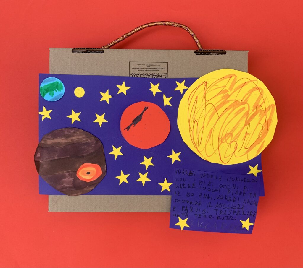 Ogni bambino aveva a disposizione la propria valigia che sarebbe diventata magica nel momento in cui l’avesse decorata. L’atelier era organizzato in modo che i bambini potessero usufruire di vari materiali in modo libero e autonomo.